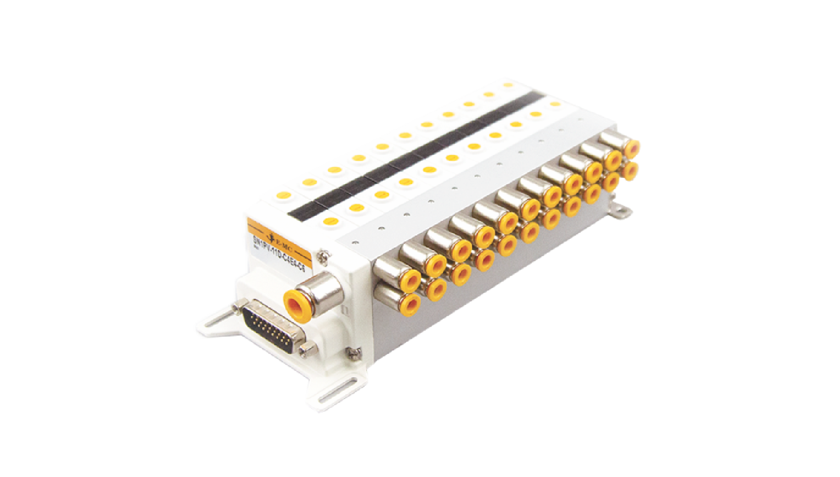 ? 兩位三通直動式電磁閥; ? 最大閥位數12位,24個電磁閥; ? 集成閥組采用高強度鋁合金匯流板,擁有外觀專利; ? 實現同方向配線&模塊式設計;設置手動按鈕; ? 電磁閥性能穩定可靠,適合長時間通電場合