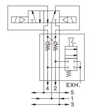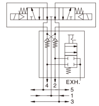 ? 中位止回疊加模塊(帶殘壓釋放):在同一閥島上配三位五通中泄式閥可實現氣缸長時間中間停止,配兩位五通閥可防止氣缸下落,以提高閥島的安全性能。