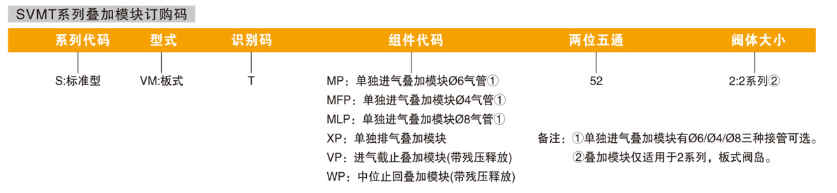 訂貨舉例:單獨進氣疊加模塊?6氣管,ERP編碼為SVMTMP522