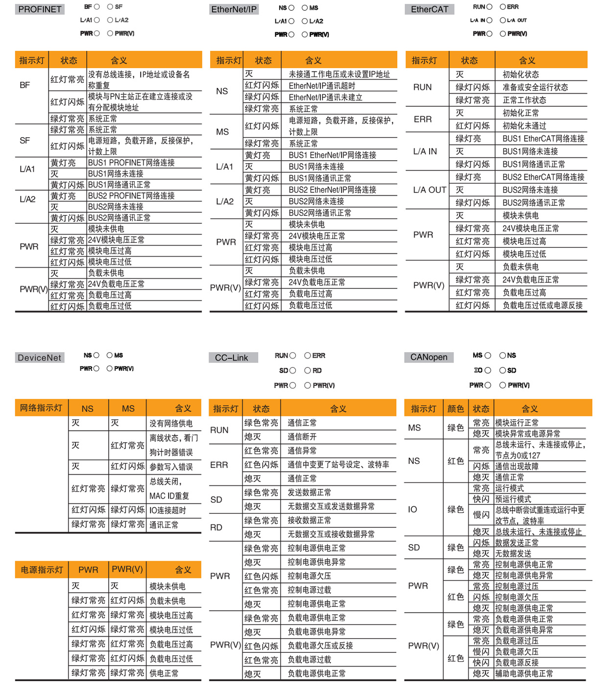 · 支持總線協議PROFINET、EtherCAT、EtherNet/IP、DeviceNet、CC-Link和CANopen。
