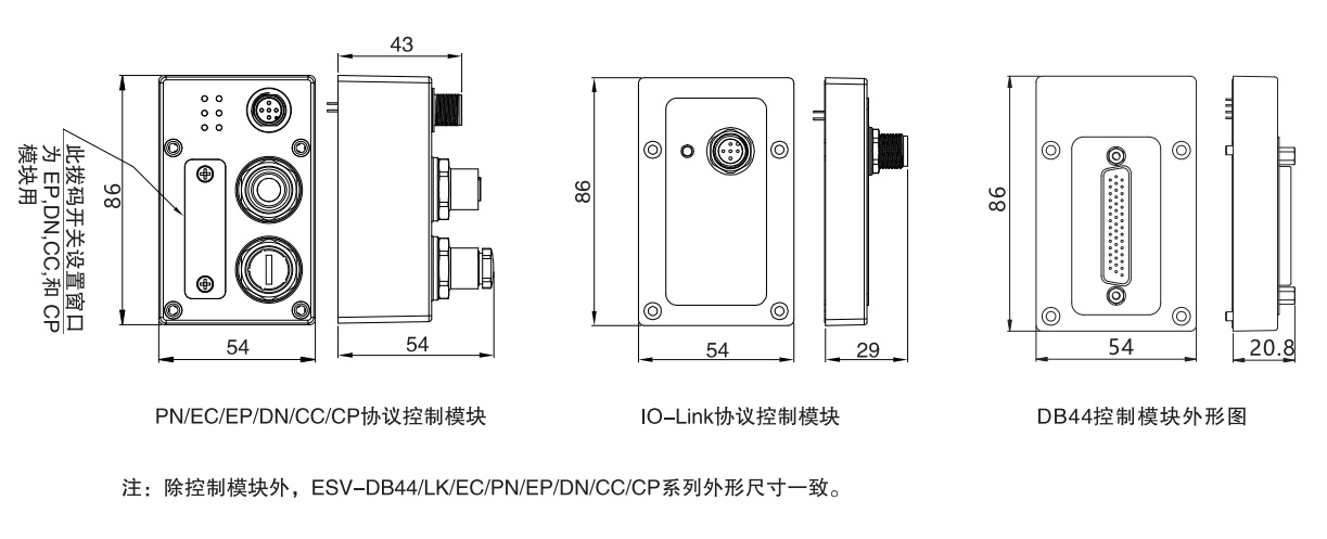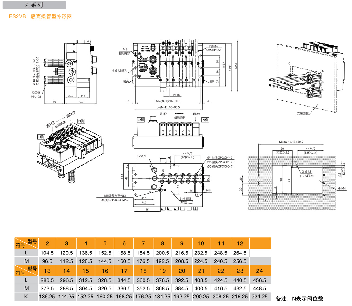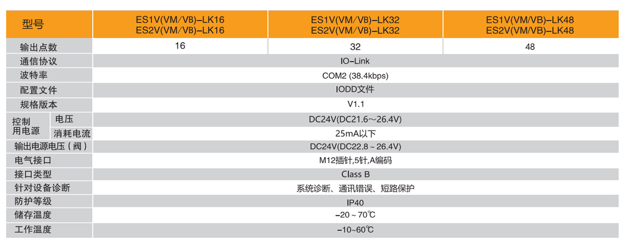 1.同規格閥時:ES系列總線閥島,1系列,閥上接管,PROFINET總線協議,輸出32點,6個兩位五通雙電控電磁閥SV5212,工作口接管口徑均為M5,工作電壓DC24V,內部先導式,配線方式為雙電控配線,進排氣口為兩側無消音器、接頭、堵頭,G牙。