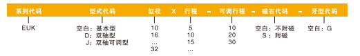 訂貨舉例:EUK系列基本型氣缸,缸徑32,行程30,附磁石,其ERP編碼為: EUK32X30-S