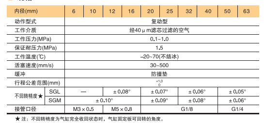 備注:缸徑6和o10的氣缸無可調型以及無直線軸承型可選
